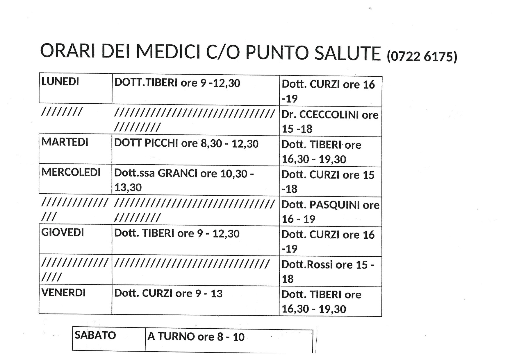 Il punto salute di Sassocorvaro è il punto di riferimento di tutti i pazienti dei medici che ne fanno parte quando, per un qualsiasi motivo, il proprio medico non è reperibile; è presente sempre un medico mattina e pomeriggio che soddisferà l'urgenza che sia visita o ricetta. E' presente anche un ambulatorio infermieristico al quale potranno afferire tutti i pazienti liberamente.